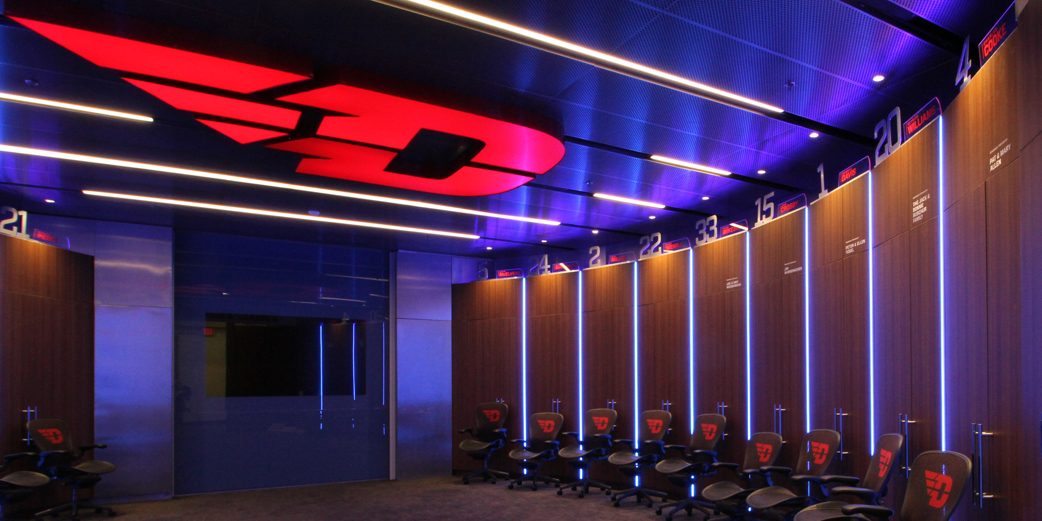The Donoher Center at the University of Dayton Arena (UD Arena) offers state-of-the-art NBA-style locker rooms and training facilities for the Dayton Flyers basketball teams. The center is named for Don Donoher, the winningest basketball coach in Dayton history and a member of the National Collegiate Basketball Hall of Fame. When executing this slam dunk of a lighting design, Heapy Engineering specified Neon Apex from Acolyte with a great assist from our amazing partners at King Lighting.